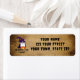 Un adorable chat noir dans un casquette de sorcières avec un jack ou une lanterne éffrayant demandant "Où est le bonbon". Sur un arrière - plan de style éffrayant avec police déplaisante pour votre adresse. Customisez avec votre adresse.