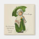 Young Irish girl holding a green umbrella and wearing a cap and shawl over her long green skirt. This vintage design has been hand retouched. Verse inside and customize signature area. More matching items in my store.