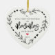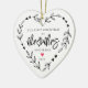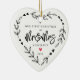 Simply perfect couple First Christmas ornament featuring a hand drawn leaf frame with modern calligraphy and a tiny heart. Dated keepsake gift for your first Christmas.
