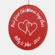 Our 1st Christmas together personalized tree ornament. Custom decorations with heart arrow and brush script handlettering typography. Red background with elegant white calligraphy handwriting template. Pretty first Christmas party gift idea for engaged couple, newlyweds, bride and groom, boyfriend and girlfriend, husband and wife. Trendy decor personalizable with name or Holiday greeting. Make your own x-mas accessories for him and her. Merry Christmas! Double hearts with hand lettered text. Gold glitter string included. Stylish handwritten font with romantic interlocking hearts. Add your own photo image on the back optionally.