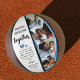 Create your very own special first Father's day photo collage basketball. Featuring 4 insta style square pictures with the text 'Our First Father's Day Together', the word together is in modern script, two cute little blue hearts that can be changed to any colour, a sweet message that you can keep or change and name/s. All text can be customized in size, font and colour.