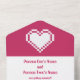 Bring touch of geeky fun to your event with this all-in-one wedding invitation and RSVP card. On the inside you will find a white pixelated heart on a bright raspberry background above a section with some sample text that can be customized for your special day. The lower section of the invite features a removable, postcard sized piece that has some sample RSVP text sitting above a raspberry pink border with a pattern of 8-bit hearts scattered across the bottom. Outside, a similar border of video game-themed hearts on raspberry can be found below the areas where you would add stamps, standard, and return addresses for both the invitation as a whole and the returnable RSVP section. The flap used to fold over and seal the card has a single 8-bit heart on a bright pink background with a sample set of initials that you can customize for a final personal touch that shows off your love for gaming and each other. Be sure to check out the rest of the Our 8-Bit Hearts in Raspberry set for other coordinating products, including return address labels.