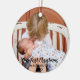 Our first Christmas as a family of four ornament featuring custom photo and year. Photo template via Pixabay licensed under CC0 and must be replaced with your own photo