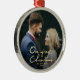 A chic Xmas gift for newlyweds. This holiday season, send out this beautiful photo Christmas ornament to newlyweds to commemorate their wedding. The ornament features " Our First Christmas " in a beautifully hand-lettered faux gold font with space for one photo. Personalize the ornament by replacing the photos and text. For best results, use a photo that is cropped to a square shape. More styles and matching envelopes, postage stamps, gift wrapping paper, etc. are also available in our store.