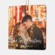Our first Christmas one photo new relationship couple goals, holidays ornament. White script calligraphy handwritten text.