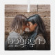 An elegant keepsake of your engagement year, this beautiful glass ornament displays a favourite photo with "our first Christmas engaged" overlaid in white lettering accented with stars. Personalize with your initials and the year.