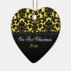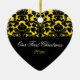This yellow, white, and black damask heart-shaped, ceramic ornament matches the wedding collection on this site, and would make a nice keepsake of your special day.