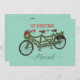 Celebrate your very first holiday season as a married couple with this charming and festive design! Featuring a beautifully illustrated green tandem bicycle, it symbolizes your new journey together.