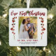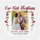 Married couple's first Christmas as Mr. and Mrs. unique keepsake tree ornament with red berries branches, your custom photo, and red modern typography script text. +++++++++ Can be a beautiful gift for newlyweds.