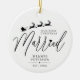 Our First Christmas Married Ceramic Ornament. Celebrate your first Christmas as a married couple in style. Our customizable template allows you to create a one-of-a-kind ornament that captures the love and joy of this memorable milestone.Add your names, wedding date, or even a special message to make it truly unique. It's the perfect keepsake to cherish for years to come!