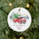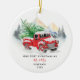 Classic Christmas holiday red truck ornament for first married Mr. and Mrs. Add the first name of the wife or husband on the reverse side and a short custom message. Add your names and the year just in time for the holidays as you spend your time together as a family. Makes a perfect keepsake gift for your son or daughter in law.