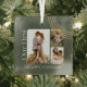 Our First Christmas Modern Geometric Three Photo Glass Ornament