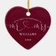Our First Christmas Mr Mrs Burgundy Heart Script Ceramic Ornament