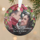 Our first christmas tree ornament featuring a photo on both sides, a watercolor xmas wreath, and a personalized text template.