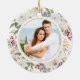 A gorgeous Our First Christmas floral photo ornament. This design features roses and berries in a Christmas wreath. A special way to celebrate your first Christmas together as newly weds.
