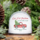 Modern Brush Script Our First Christmas in our New Home Snow Globe includes Watercolor Vintage Red Truck with Christmas Tree - Photo Back