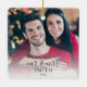 Our First Christmas Newlywed Mr Mrs Wedding Christmas Ornament. Features simple modern elegant calligraphy script typography design. Personalize with your photos, family name and adjust all text and colours. Christmas gift for newlyweds.