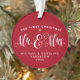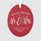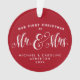 This "Our first Christmas as Mr. and Mrs." ornament featuring unique script typography and date and place on the back is the perfect way to commemorate your first married Christmas. The red background colour can be changed by clicking "customize further."