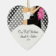 Our First Christmas Ornament features a bride and groom with a black diamond background! Personalize with your information and date and you're all set to go! Wonderful dated keepsake gift for your first christmas and a great addition to you christmas ornament collection.