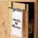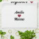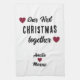 Our First Christmas Together Red Hearts kitchen towel. Personalized kitchen towel featuring modern and trendy typography saying Our first Christmas together, 3 hearts and names. Add your names.