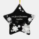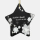 Glittery white faux fabric flowers and snowflakes + posh swirls in shades of grey + black background designed on custom Wedding Gift Ornaments. The star-shaped ornament will make a super lovely & special keepsake for newlyweds! All the sample text can be easily personalized with your own wording. Feel free to edit the colours, sizes & fonts of the text as well. (You can find the matching wedding essentials & favours in this store, Bridal Heaven.