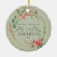 Celebrate the magic of your first Christmas together as newlyweds with our "Our First Christmas Mr. and Mrs. Photo Name Date Ceramic Ornament." with a beautiful floral wreath. This beautifully crafted keepsake will add a touch of love and nostalgia to your holiday décor while preserving cherished memories for years to come. Makes a heartfelt and thoughtful gift for newlywed couples, whether you're purchasing it for yourselves or as a gift for friends or family members.