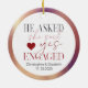 Modern typography with faux rose gold foil border. Stylish and chic Christmas ornament for engaged couples. He Asked ... she said yes.... engaged. Monogrammed with names and date of engagement. Wonderful memory keepsake gift.
