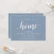 Our first home, new home housewarming party invitation card ("our first home") in dusty blue theme, with cute little heart. Planning a housewarming party in celebrating your new home with your family and friends? Invite your guests with this beautiful and perfect Rustic calligraphy themed housewarming party invitation card.