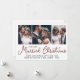Send joyful holiday wishes as a new Mr. & Mrs! Celebrate marriage as newlyweds and share three of your favourite wedding pictures with a stylish custom photo collage "Our First Married Christmas" holiday card. All text on this template is simple to personalize to include any wording, such as Merry and Married, Merrily Married, Happy Holidays, Seasons Greetings, New Year Cheers etc. Modify or delete message on back to use as wedding thank you and Christmas card combined. (IMAGE PLACEMENT TIP: An easy way to centre a picture exactly how you want is to crop it before uploading to the Zazzle website.) The modern minimalist black, white and burgundy design features trendy dark red handwritten style script typography and a unique photo grid with 3 images of your choice. Family and friends will love displaying this elegant customized card. Cheers to merrily ever after!