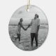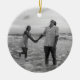 Our Frst Christmas Engaged Black and White Photo Ceramic Ornament.