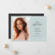 Beautiful graduation photo announcement features a vertical or portrait oriented photo aligned at the left, with "our graduate" and your graduate's name, school, and graduation year to the right. Delicate geometric detailing completes the look. Add a personal message to the back, along with an additional photo.