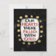 A cute typographic design that says "Our Hearts Were Filled With Gold". It's black and red text on a white rectangle with funky, playful gold dots surrounding it, all on a black background.