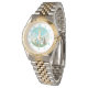 The watch is bright and shiny. It feels strong and durable. It is very appealing and attractive. The printed image appears clear. It is a perfect reminder for me to "Be Present" everywhere I go.