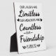 Celebrate the beauty of true friendship with this heartfelt “Our Laughs Are Limitless, Our Memories Are Countless, Our Friendship Is Endless” design. This elegant black and white friendship quote typography art captures the timeless bond between best friends, sisters, or loved ones. Perfect for personalized gifts, home décor, mugs, t-shirts, pillows, cards, notebooks, and more on Zazzle!