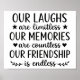 Celebrate the power of friendship with this heartwarming “Our Laughs Are Limitless, Our Memories Are Countless, Our Friendship Is Endless” design — a timeless quote that captures the essence of love, laughter, and lasting connection.