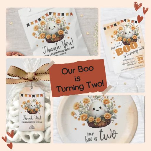 Invite friends and family to a spooky-cute celebration with this “Our Little Boo is Turning Two” ghost birthday invitation. Featuring an adorable ghost surrounded by cheerful orange florals and a festive banner, this Halloween-themed design is perfect for a fall birthday party. Easily personalize with your party details for a fun and memorable invite.
