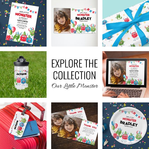 Celebrate your little monster's special day with our fun and modern monster-themed birthday party! Our monster paper party hats features watercolor monsters in shades of green, blue, and red, with yellow stars.