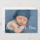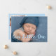 Celebrate your new arrival with this sweet and modern photo birth announcement featuring your baby’s horizontal photo and the phrase “Our Little One” in light blue handwritten script. The baby's name and birth stats are displayed below in crisp white lettering, creating a clean and contemporary look. The back of the card includes a vertical photo and space for a personalized thank you message, making it a meaningful keepsake for friends and family. A perfect design for baby boys or anyone who loves a soft, serene colour palette.