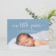 This birth announcement features the words "our little prince" in a white modern script with your new baby's birth details under it. All elements are customizable - place text wherever you'd like by using the customizing tool