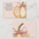 Introducing the Little Pumpkin on the Way Pink Bow Baby Shower Book instead of Card Enclosure card. This is a delicate masterpiece that captures the essence of anticipation and joy, while promoting early reading. Each is a watercolor dream, with gentle pastel hues that swirl together to create a scene as soft and inviting as a baby's first smile. The design features a dainty pink bow, symbolizing the sweetness of new beginnings and setting the tone for a memorable celebration. Let the fluid artistry of the watercolor illustrations enchant your guests, evoking images of cozy autumn days and heartwarming gatherings cuddled up with books. This design, much like a cherished keepsake, will not only convey the exciting news but also serve as a beautiful memento of this special time. Make every detail count by choosing a design that harmonizes elegance with the warmth of impending parenthood. With the Little Pumpkin on the Way Pink Bow Book Instead of Card Enclosure Card, your baby shower will be as enchanting as the little one you await.