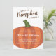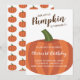 This adorable fall 1st birthday invitation features a cute pumpkin with brown and white text. Personalize this invitation with the details of the party.