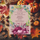 "Our little pumpkin is turning ONE" 1st Birthday party invitation for your guests. Wow them with the lush greenery wreath and vibrant purple fall pumpkins. The design has autumn leaves, a circular greenery wreath and purple pumpkins to celebrate the colours of Fall. The illustration uses modern script and typography that can be easily customized. The reverse side has a matching design.