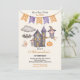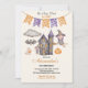 Celebrate your baby girl’s first birthday with a sweet and spooky Halloween-inspired design. Featuring pastel witches, pumpkins, ghosts, bats, and a haunted house in soft watercolor tones, this invitation is perfect for a magical autumn celebration. Fully editable and adorable enough to enchant all your guests.
