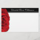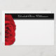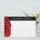 Elegant stationery featuring a simple design with a red rose and a complimenting black, grey, white, and red theme.