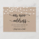 This modern rustic design new home, moving announcement, change of address postcards (with card title, our new new home). It s the perfect way to announce to your friends and family, that you have moved. Black and rustic kraft background, farm string lights.