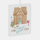 Fun keepsake ornament to celebrate your new home. Our fun holiday new home ornament features our handprinted gingerbread house. pink frosted tree, and a red mailbox with a custom monogram. Customize with family name and address. The reverse side features our watercolors wreath and red mailbox with a personalized monogram. All illustrations are hand-painted original artwork by Moodthology.