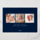 Elegant foil birth announcement featuring "Our New Love" displayed in a gold foil script overlay with rose gold foil hearts on each side. Personalize the gold foil birth announcement with a horizontal newborn photo, the baby's name, and birth stats. The announcement reverses to display 3 additional photos and text with a solid navy background. The 4 photo birth announcement is perfect to use as a Valentine's day birth announcement!
