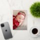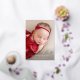 Elegant foil birth announcement featuring "Our New Love" displayed in a gold foil script overlay with gold foil hearts on each side. Personalize the gold foil foil birth announcement with a vertical newborn photo, the baby's name, birth stats, and welcomed by text. The announcement reverses to display an additional photo with a solid dark red background. The 2 photo birth announcement is perfect to use as a Valentine's day birth announcement!