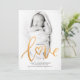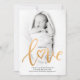 Elegant Gold Script Calligraphy our new Love baby birth announcement. Perfect for a Valentine's Day Baby Photo Holiday Card. Personalize this with your own details and photo.