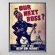 Great quality, restored Our Next Boss? world war 2 poster. WW2Poster store has this and hundreds of ww2 posters, mugs, ww2 stamps and more memorabilia. Relive and cherish the American history. This and many other products with Our Next Boss? in our collection.